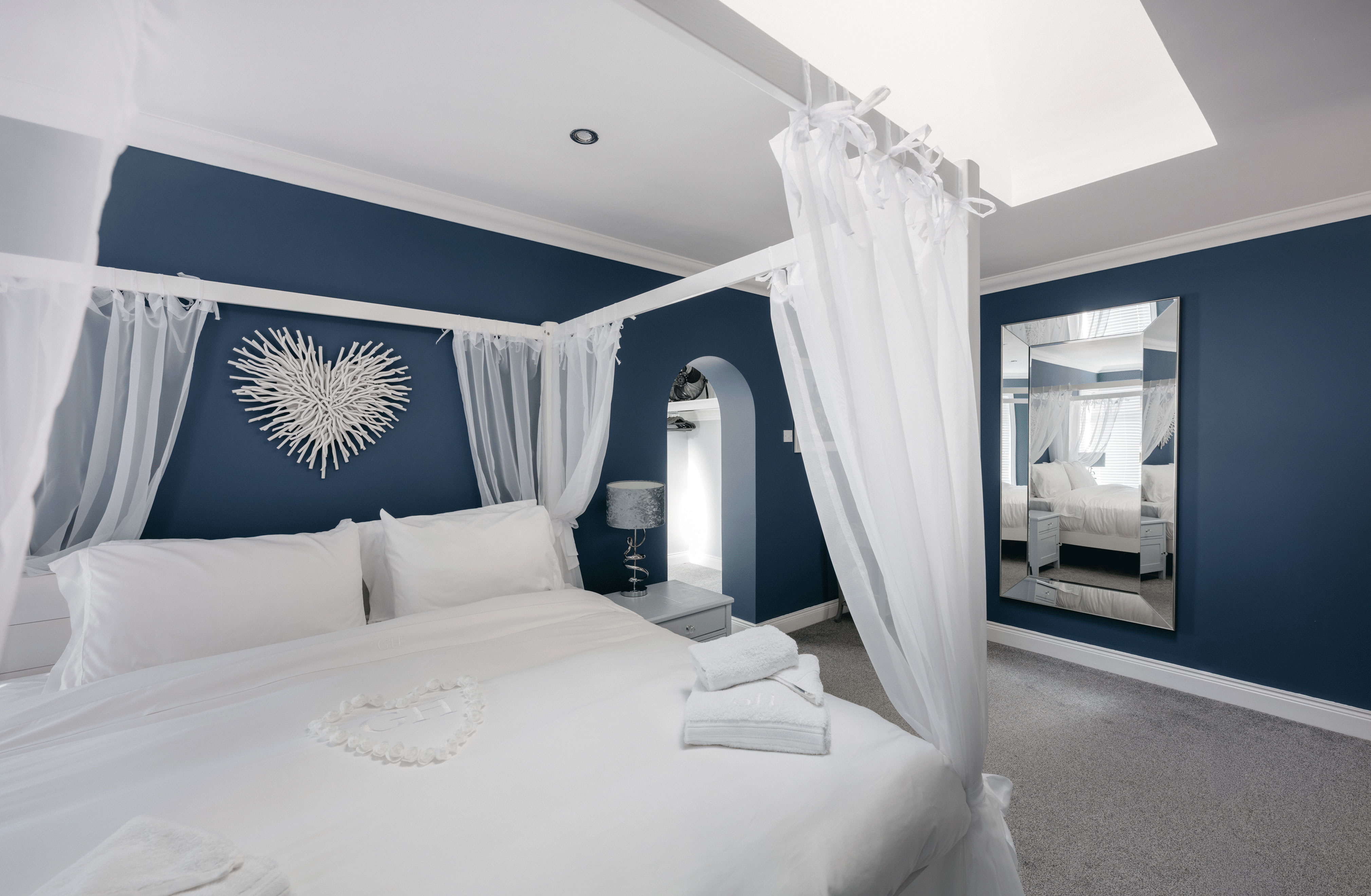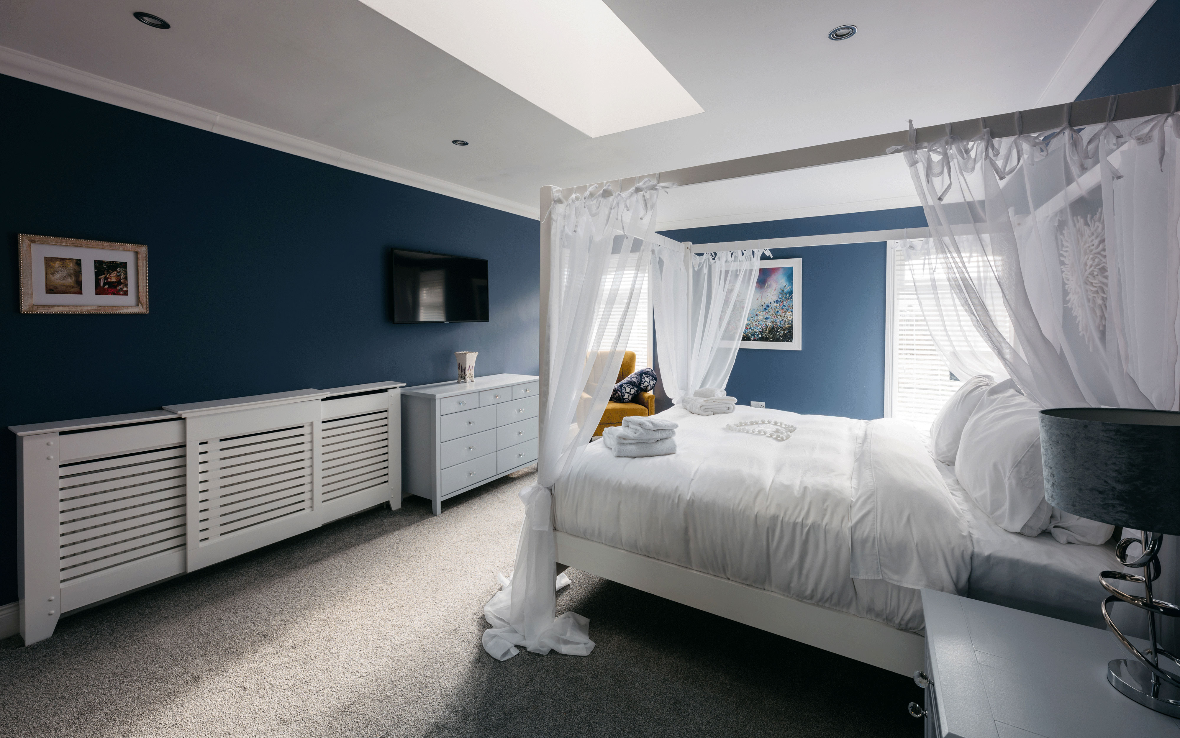 Hawthorn is the romantic heart of the house: deep purple walls and a draped canopy bed that practically insists on long, lazy mornings. Warm textures and soft lighting make the room feel cocooned, while sweeping mountain views open out beyond the windows. It’s a secluded, dramatic retreat for couples who like their luxury with a bit of theatre.
