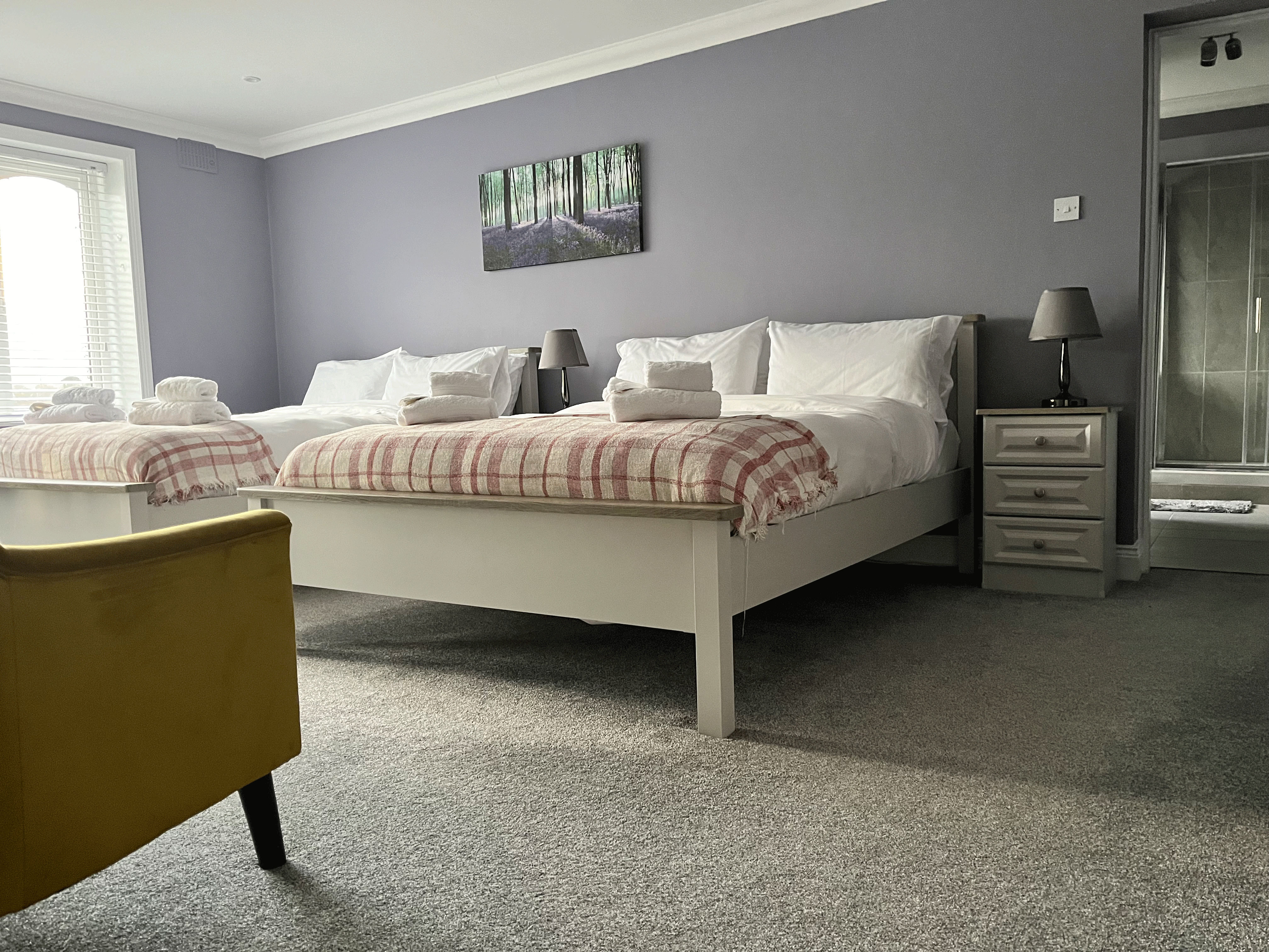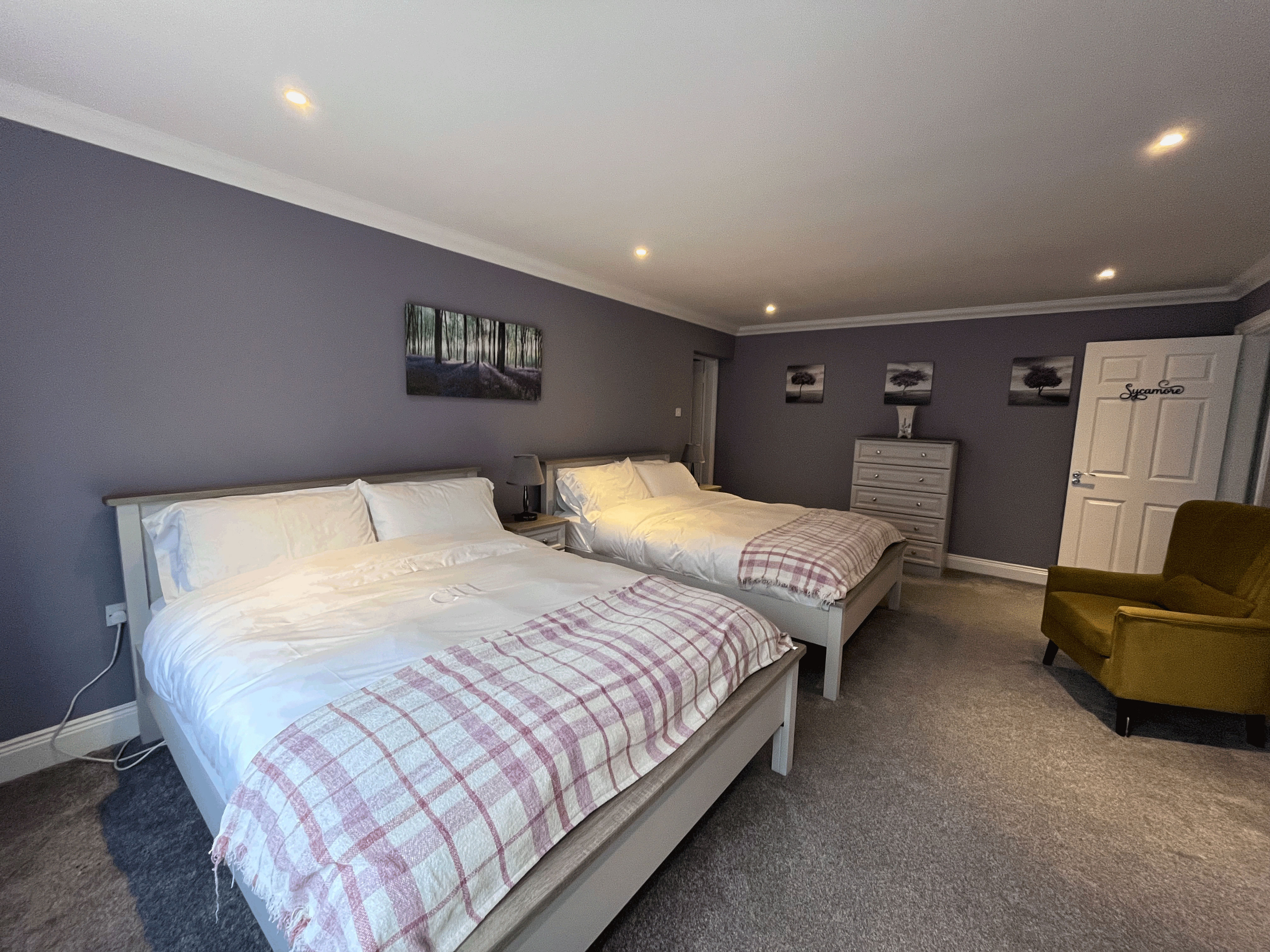 Tucked into the garden level with rich purple walls and cool, calming tones, Sycamore feels both cozy and quietly indulgent. Panoramic views frame the landscape outside, while fine linens, soft textures, and mattresses invite you to linger a little longer. With space for up to four, it’s ideal for couples who like a little extra room, or a small group that still wants a luxurious, grown-up retreat.